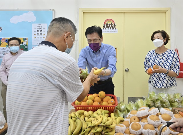 其後,孫東聯同社創基金專責小組主席李正儀和副主席繆志仁向基層家庭派發食物包,並與受惠人士傾談。每份食物包包括米、麵條、餅乾及罐頭食品。適逢中秋佳節臨近,孫東教授亦送上月餅和水果,希望為他們加添節日溫暖。